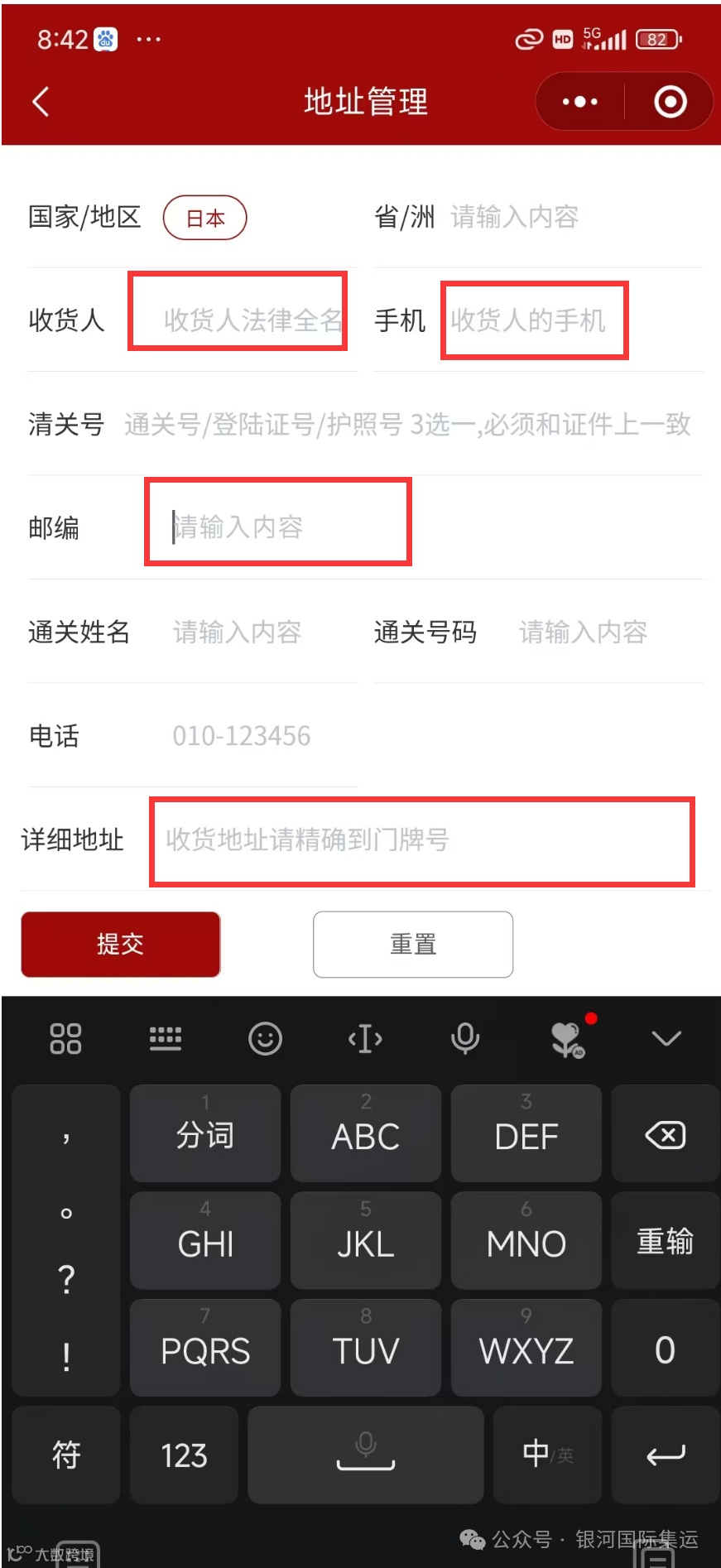 4.日本路向收货信息只需要填写 姓名 电话 邮编 地址就可以。