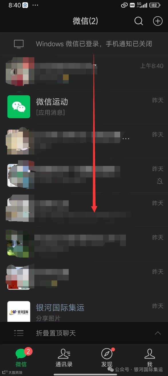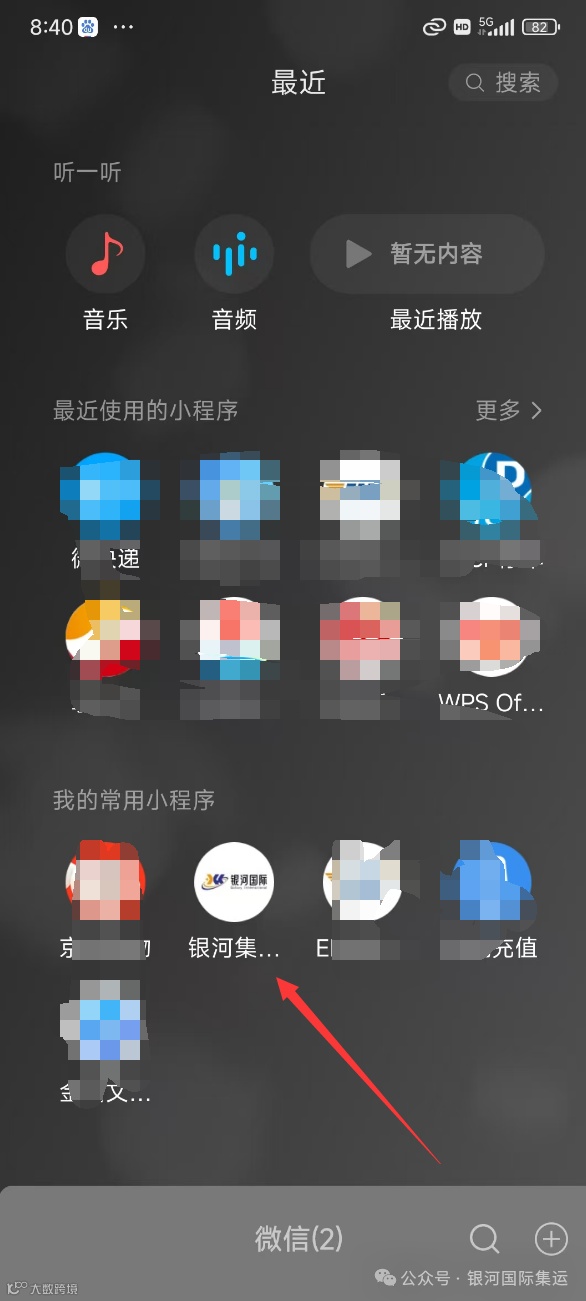 银河国际集运1.进入微信首页,然后下滑屏幕就会看到小程序。