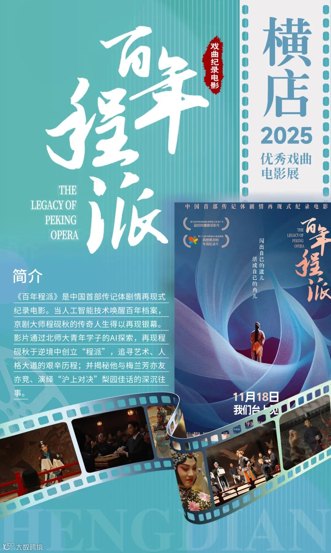 为纪念京剧大师程砚秋诞辰120周年而特别拍摄制作的中国首部传记体剧情再现式纪录电影《百年程派》,影片将于横店电影城全国门店(除北京地区外)独家上映,为观众打造专属的非遗文化观影体验。