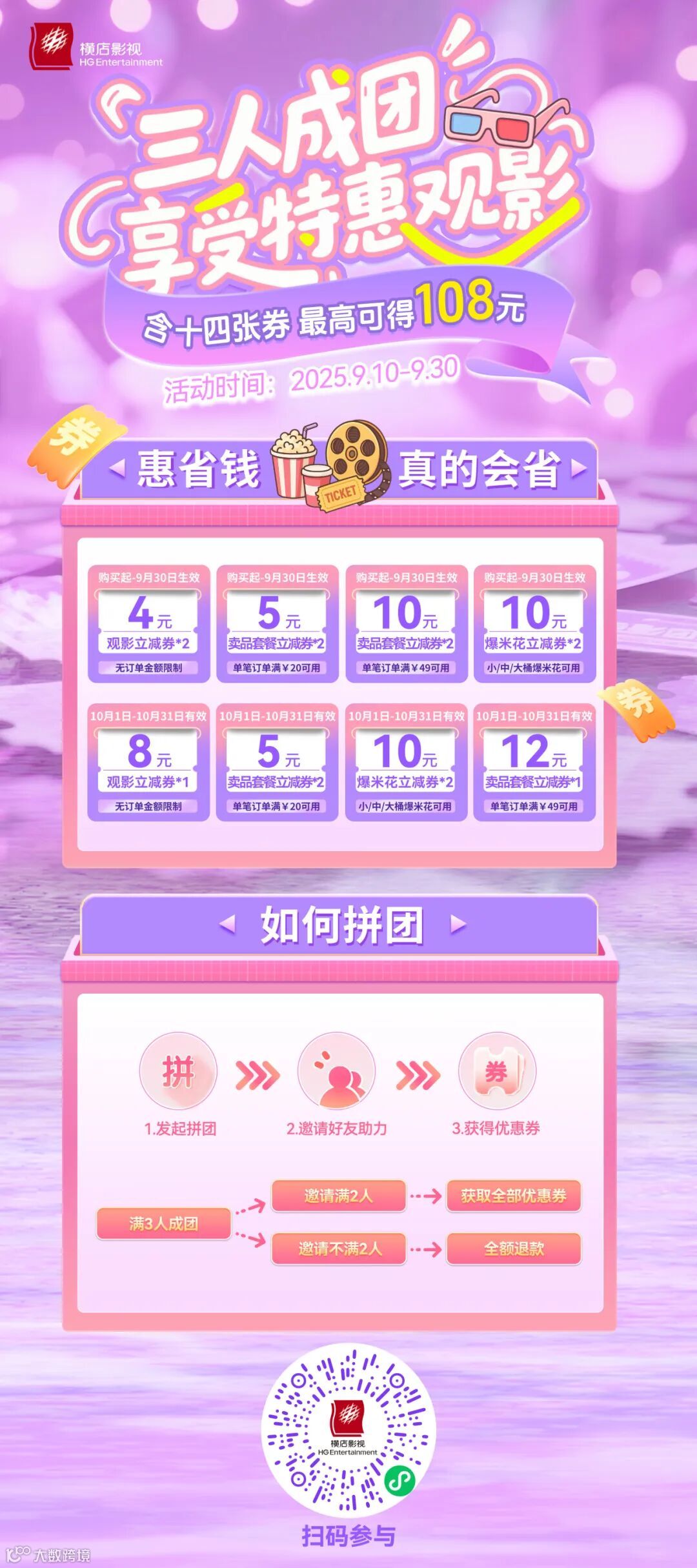 9月10日起,更推「三人成团」超值观影礼:含14张优惠券包,最高可省108元!