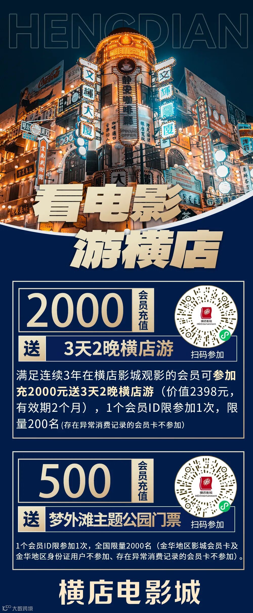 🔸充2000送3天2晚横店游