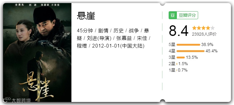 编剧全勇先,2012年电视剧《悬崖》的编剧,《岁月》(豆瓣评分9.2)、《雪狼》(豆瓣评分8.5)也都是由他编剧。