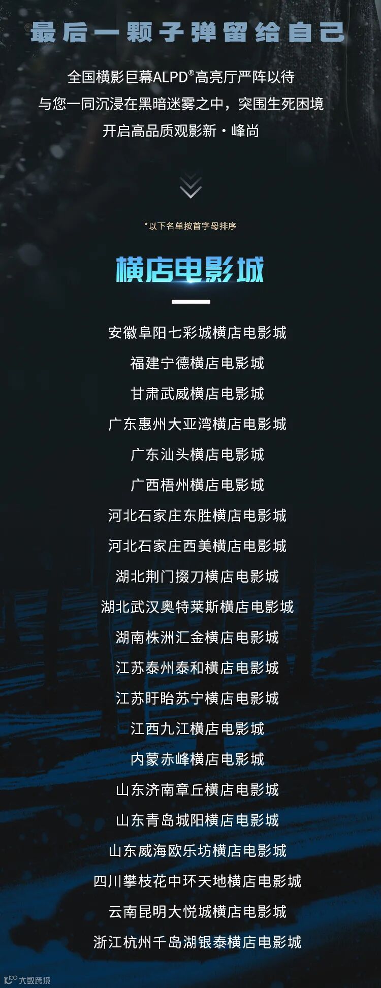 这样一部影片,有足够多的理由吸引你第一时间去影院见证。此刻的你,需要先找到离自己最近的:横影巨幕激光高亮影厅。