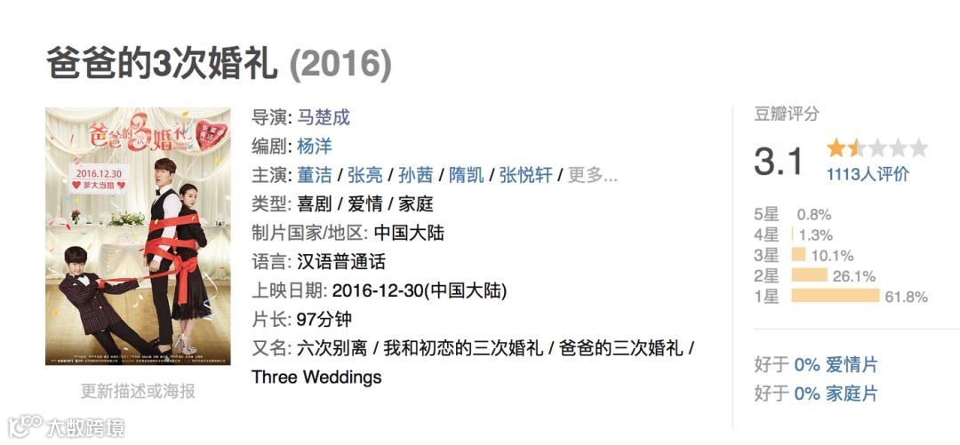 上一部电影,因为没有太多的实力演员加持,就只有3.1分了。