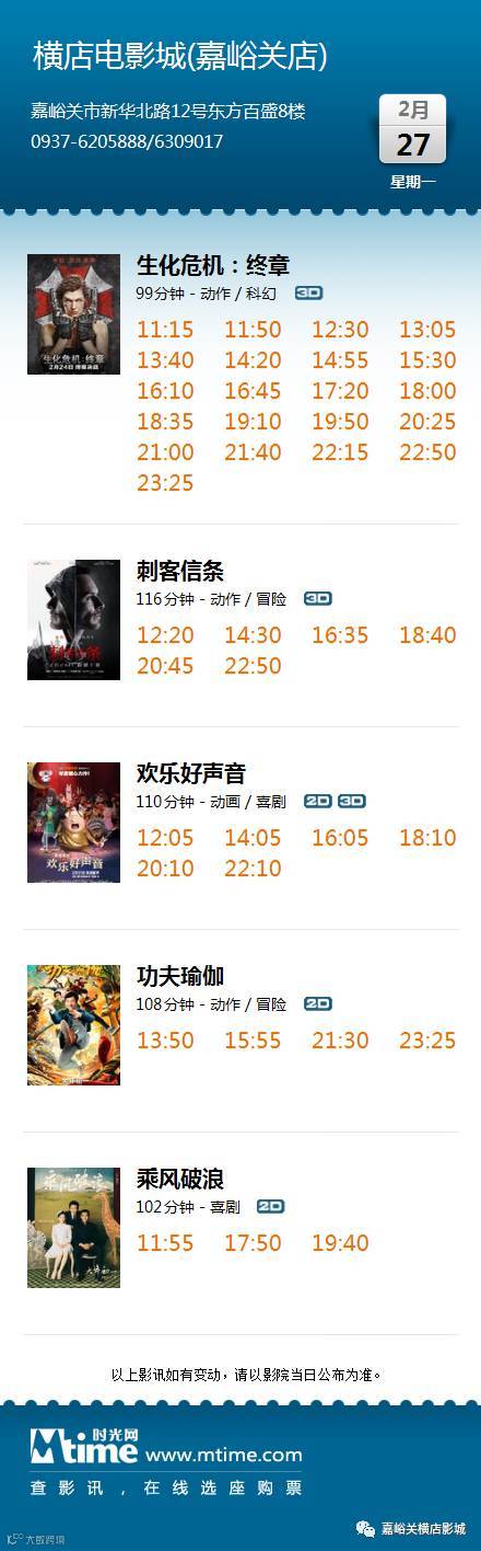 网上购票流程:您只要登录→横店影视官网www.hengdianfilm.com→选择【更多城市:嘉峪关】→快速购票→会员购票、非会员购票→选择时间场次→支付(支持支付宝付款)