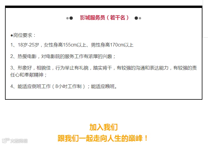 文山横店电影城火热招聘中,诚征有志之士加入!