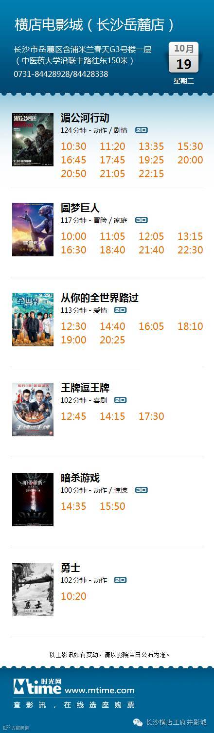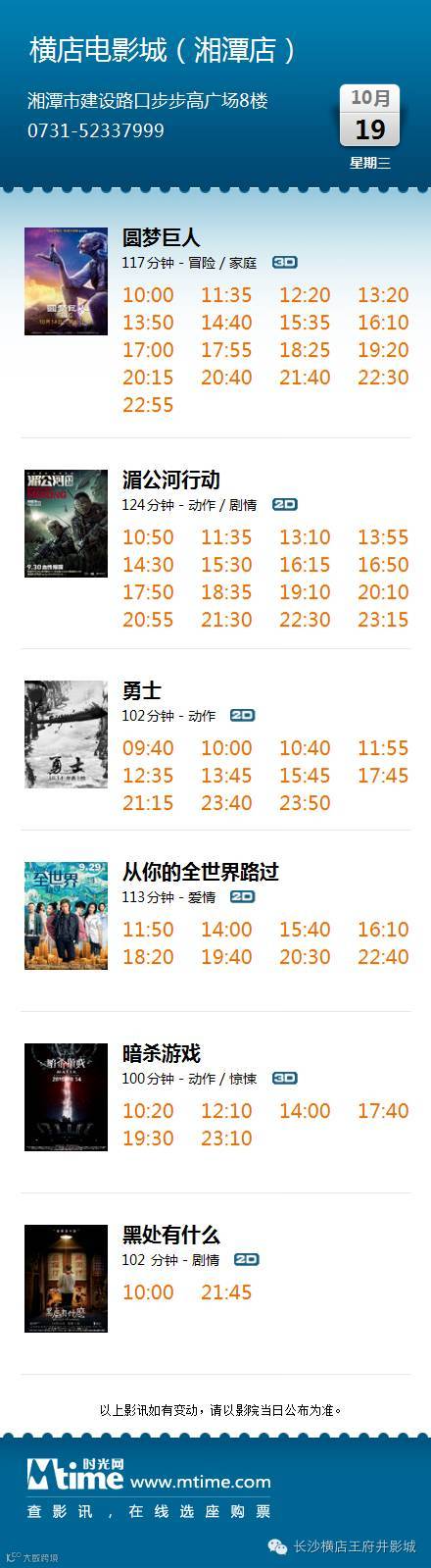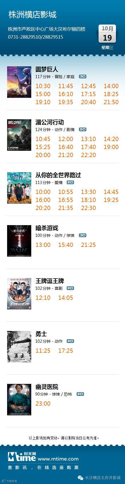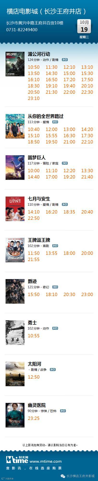 导读:今日影讯·10月19日长沙王府井 / 长沙岳麓 /株洲 / 湘潭 / 邵东