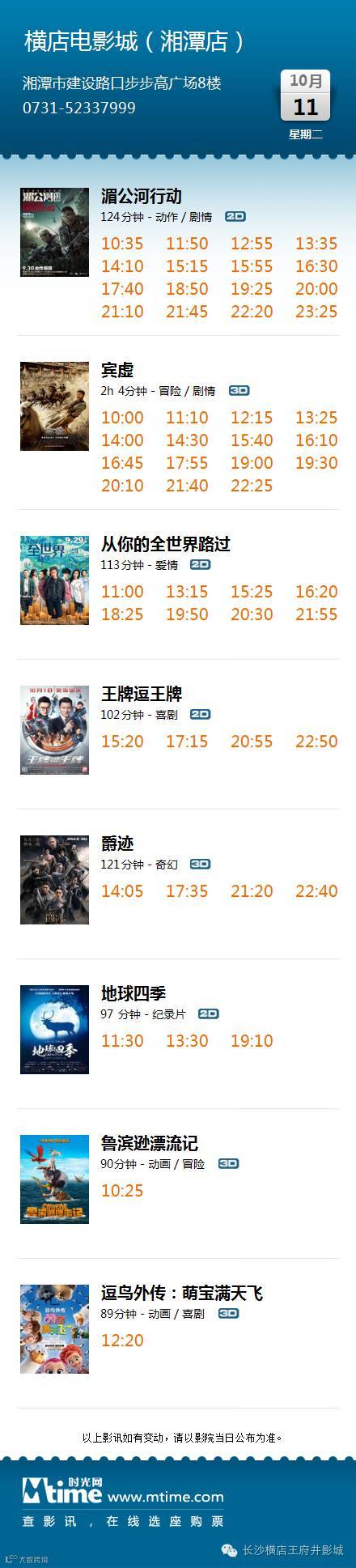 ◆影讯【10月11日王府井/长沙岳麓/株洲/湘潭/邵东】