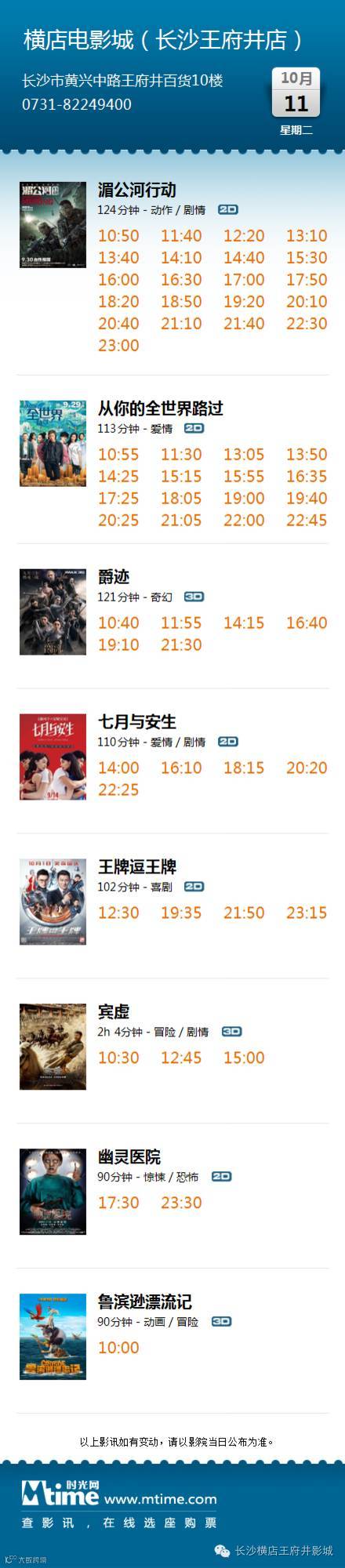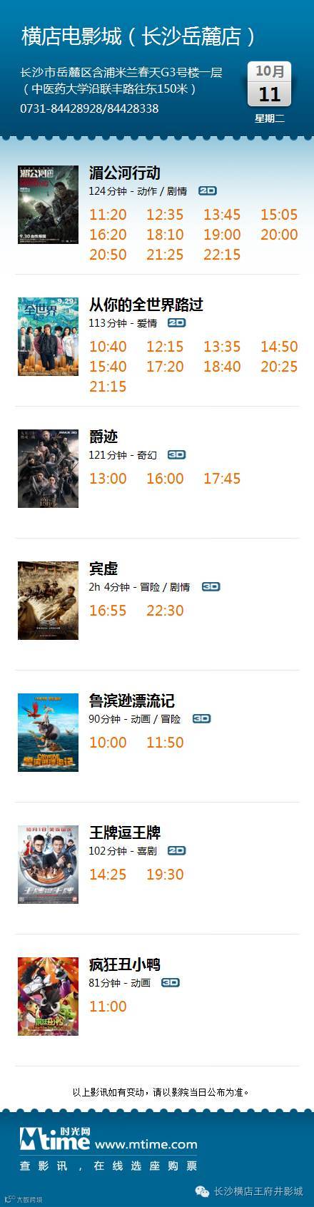 导读:今日影讯·10月10日长沙王府井 / 长沙岳麓 / 株洲 / 湘潭