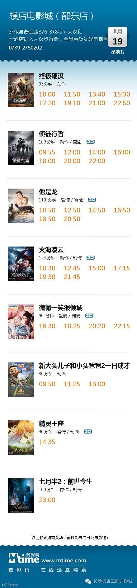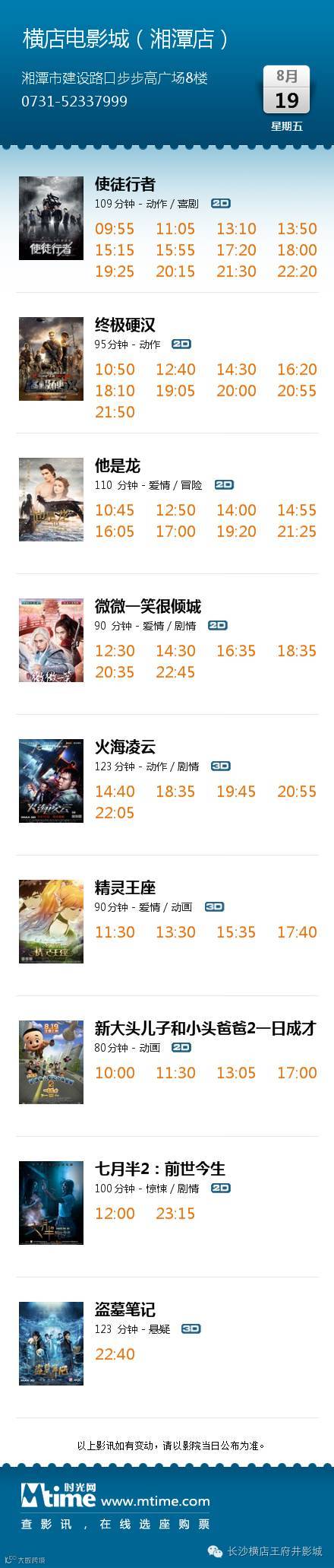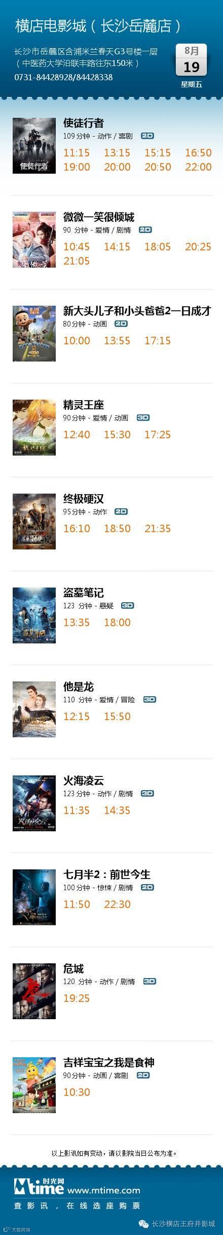 ◆影讯【8月19王府井/长沙岳麓/株洲/湘潭/邵东】