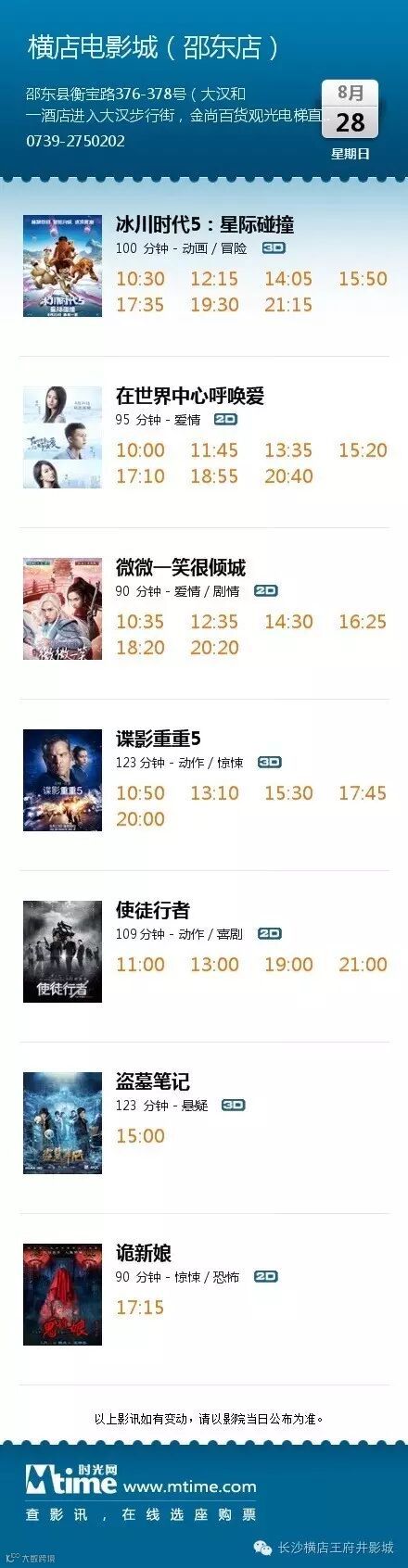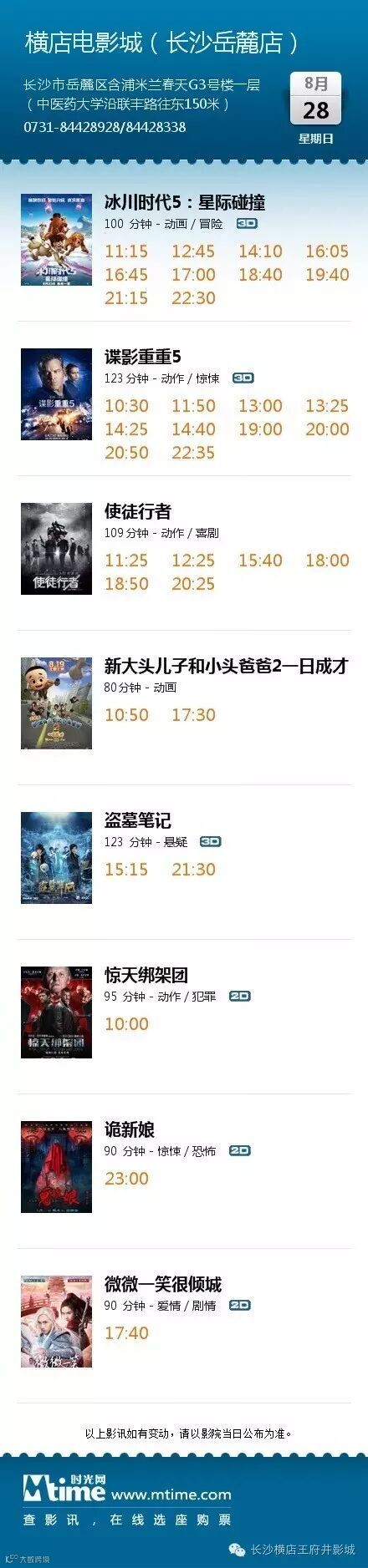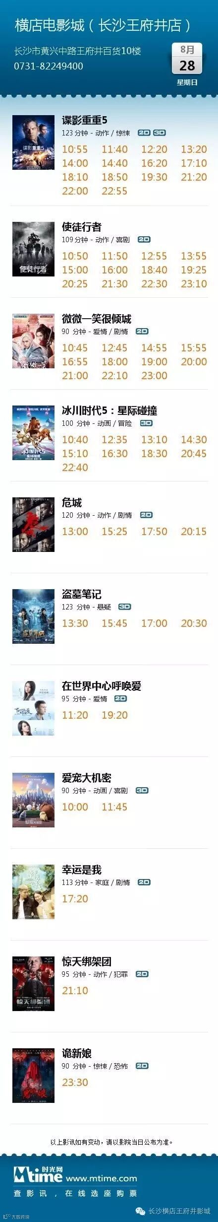 导读:今日影讯·8月28日长沙王府井/长沙岳麓/株洲/湘潭/邵东