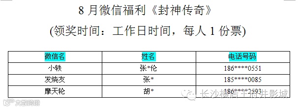恭喜以上观众获得了由长沙横店王府井影城提供的