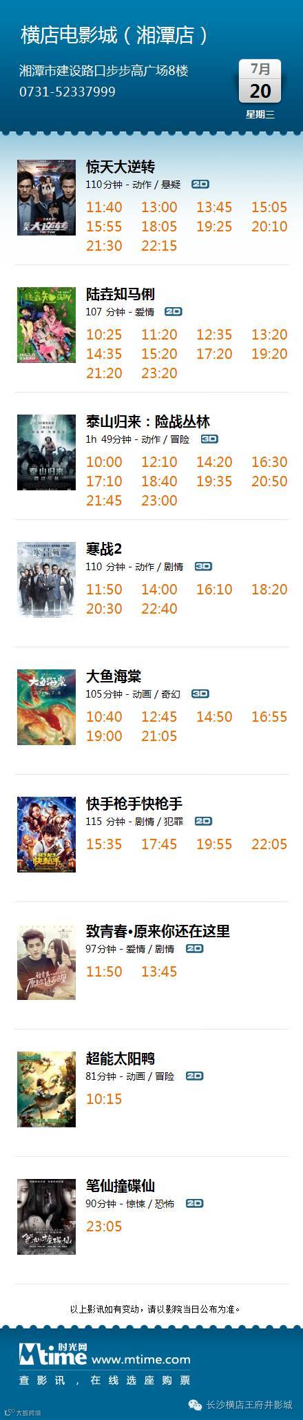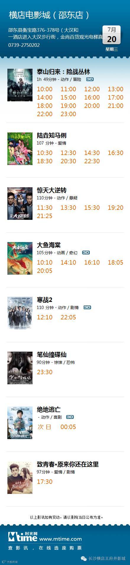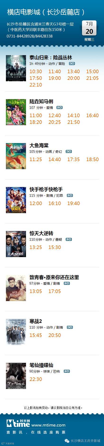 导读:今日影讯·7月20日长沙王府井/长沙岳麓/株洲/湘潭/邵东