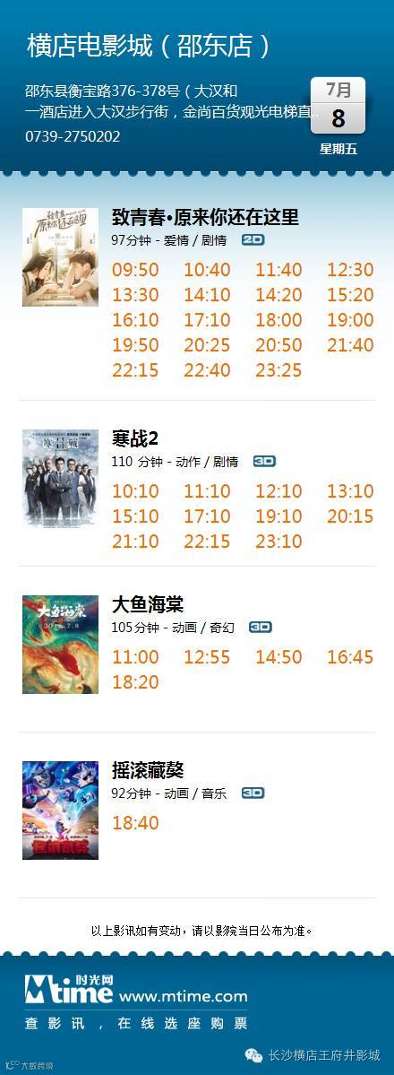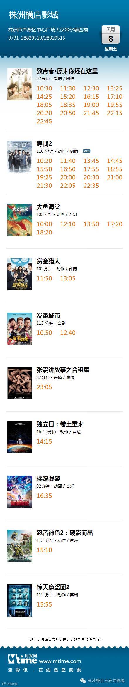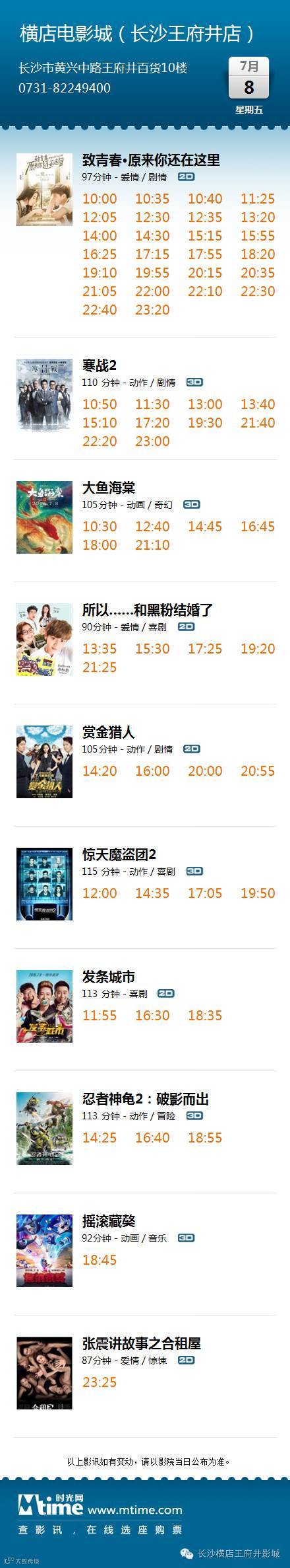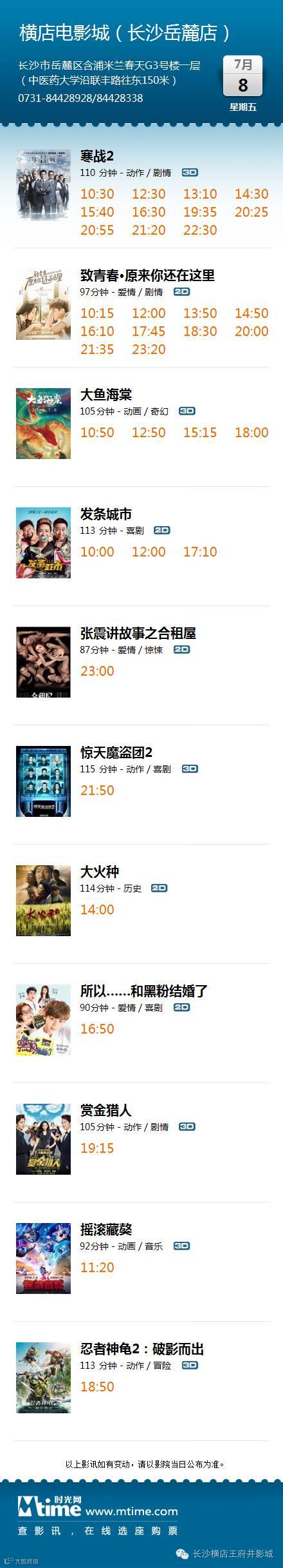 导读:今日影讯·7月8日长沙王府井/长沙岳麓/株洲/湘潭/邵东