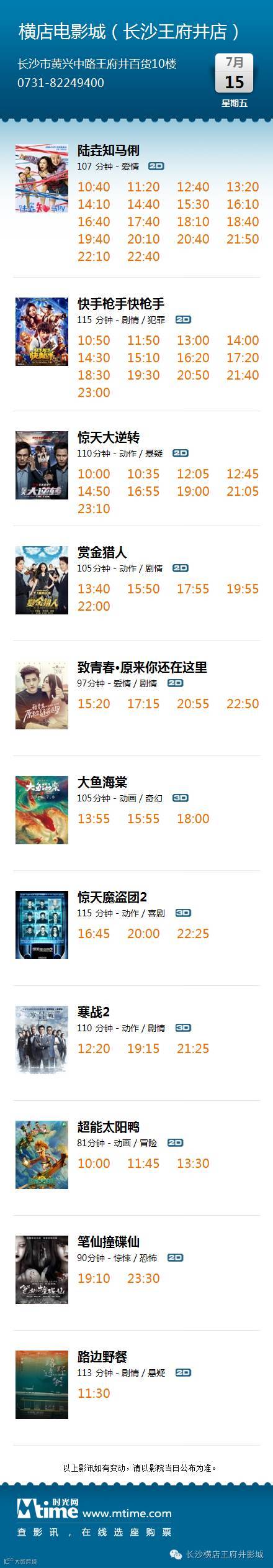 导读:今日影讯·7月14日长沙王府井/长沙岳麓/株洲/湘潭/邵东