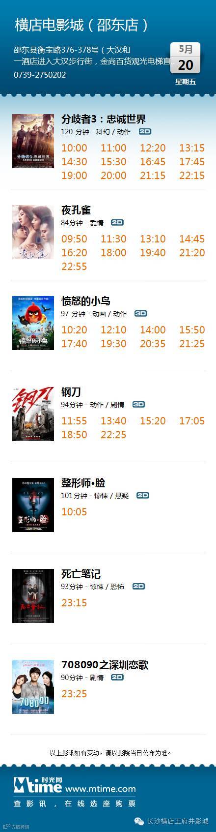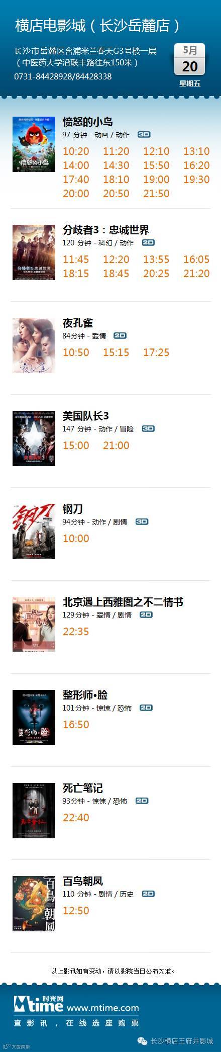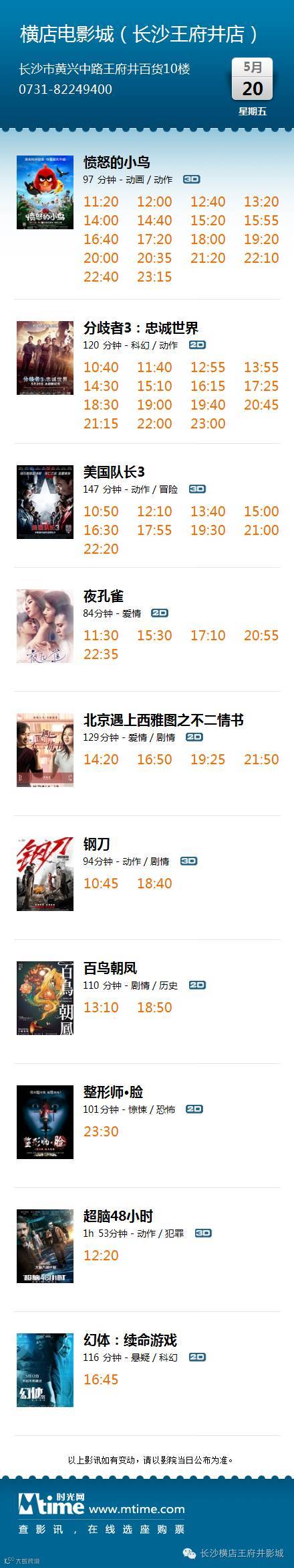 导读:今日影讯·5月20日长沙王府井/长沙岳麓/株洲/湘潭/邵东
