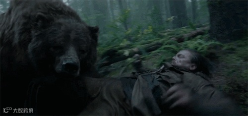 你怎么创造一种视听语言,去讲述人遭遇熊的袭击这件事?我们讨论了很久很久,也看了一些真实的熊击事件经过。我们见了很多(经过训练的)灰熊演员,最终决定不启用它们,因为它们处在圈养状态中太久,已经没有熊样了。——卢贝兹基 |