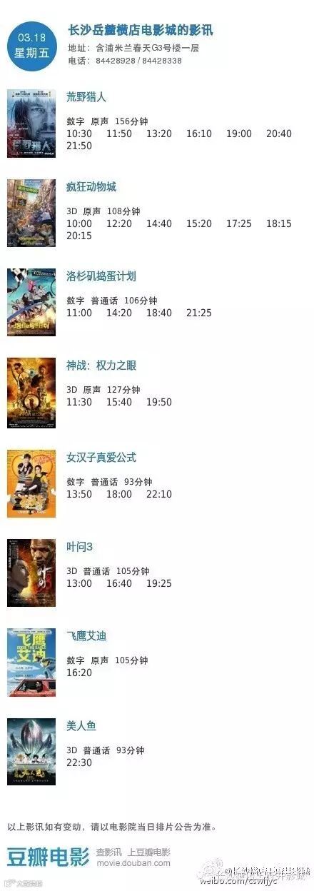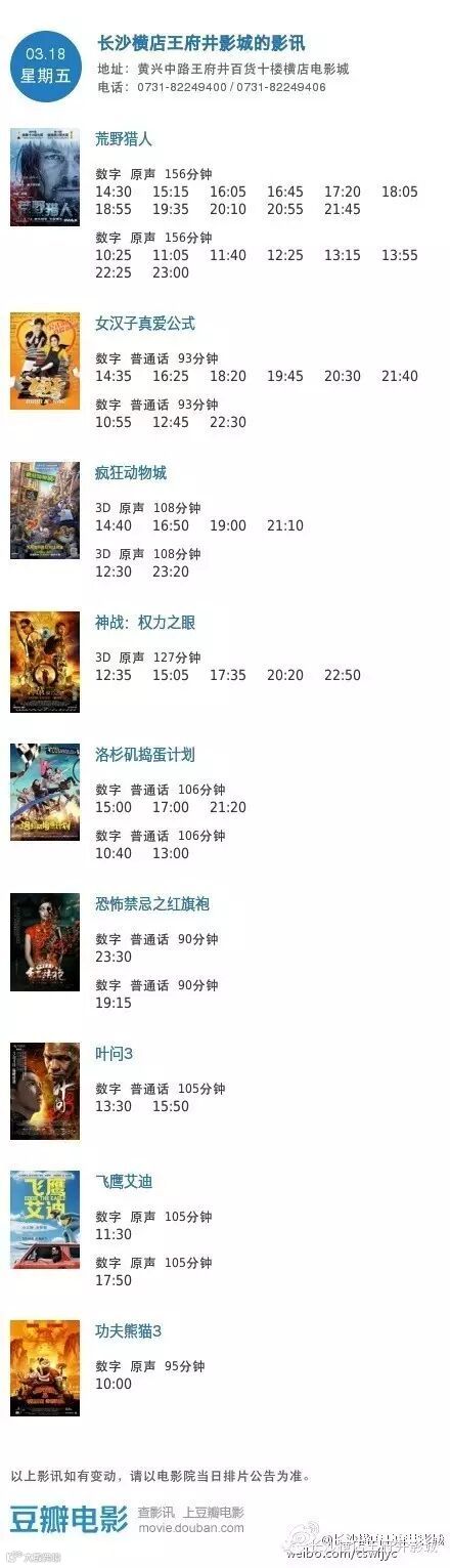 导读:今日影讯·3月18日王府井 / 岳麓