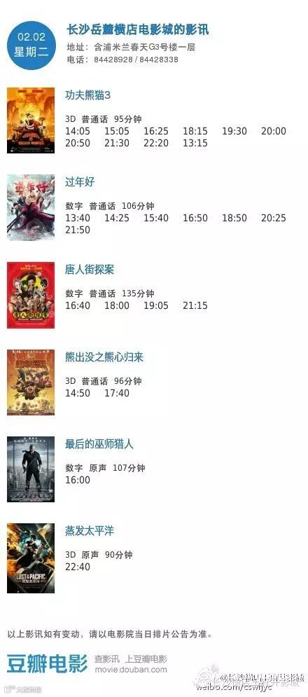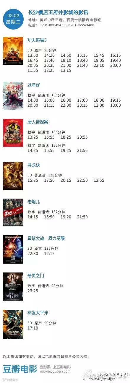 导读:今日影讯2月2日王府井/岳麓