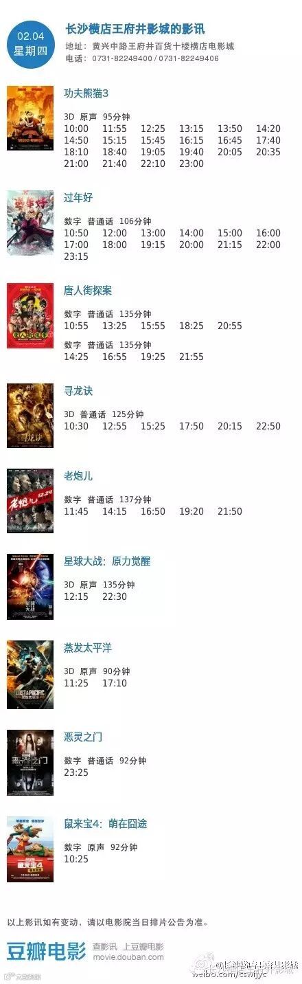 导读:今日影讯·2月4日王府井/岳麓