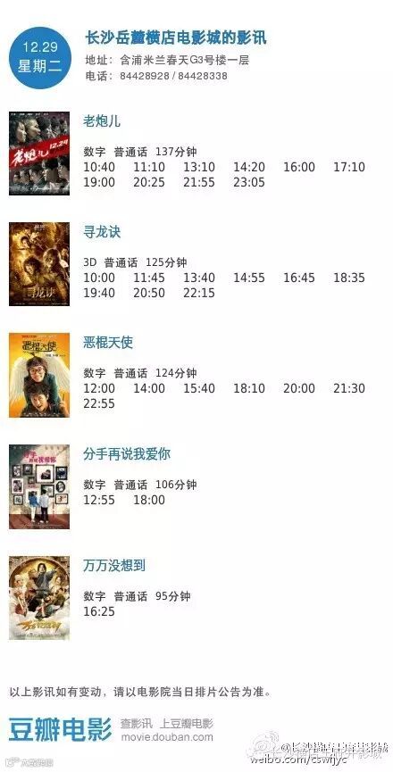导读:今日影讯·12月29日王府井/岳麓