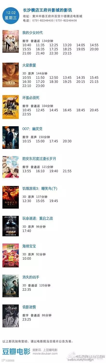 导读:今日影讯·12月2日王府井/岳麓