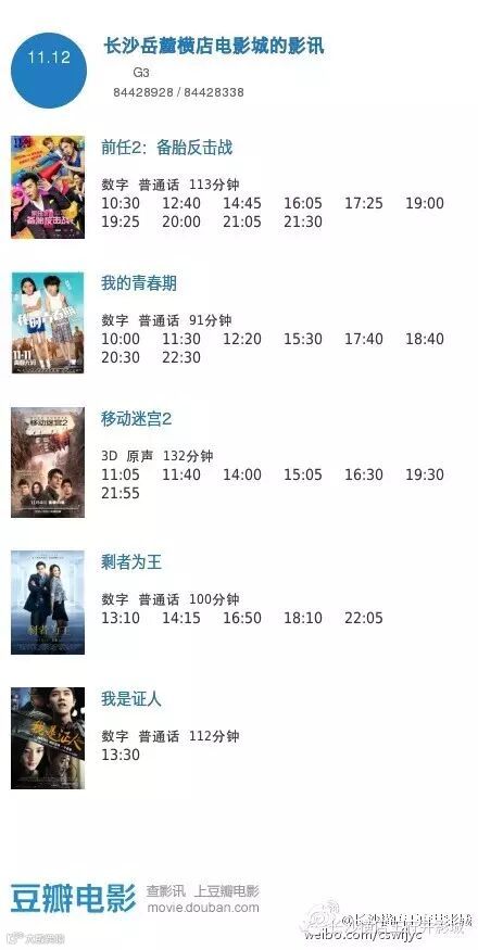导读:今日影讯·11月12日王府井/岳麓