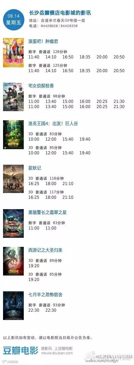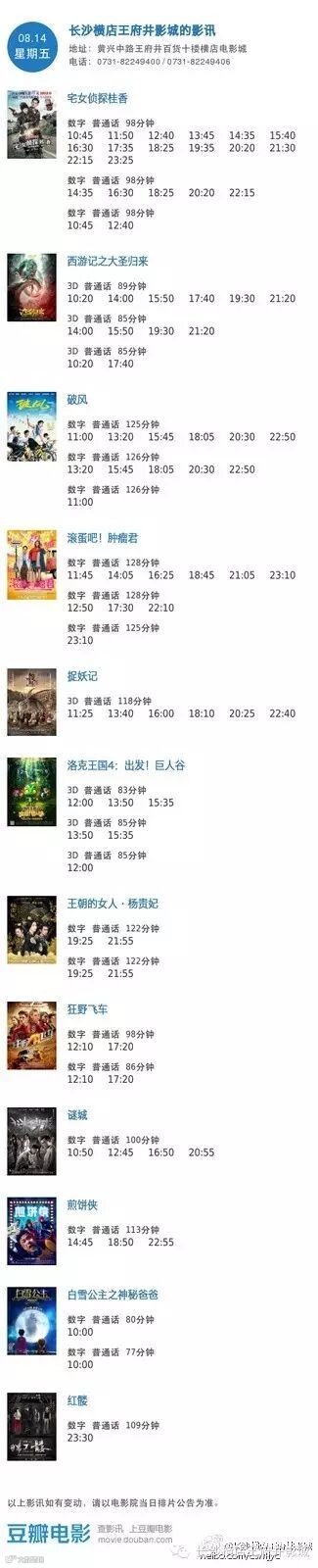 导读:今日影讯·8月14日王府井/岳麓