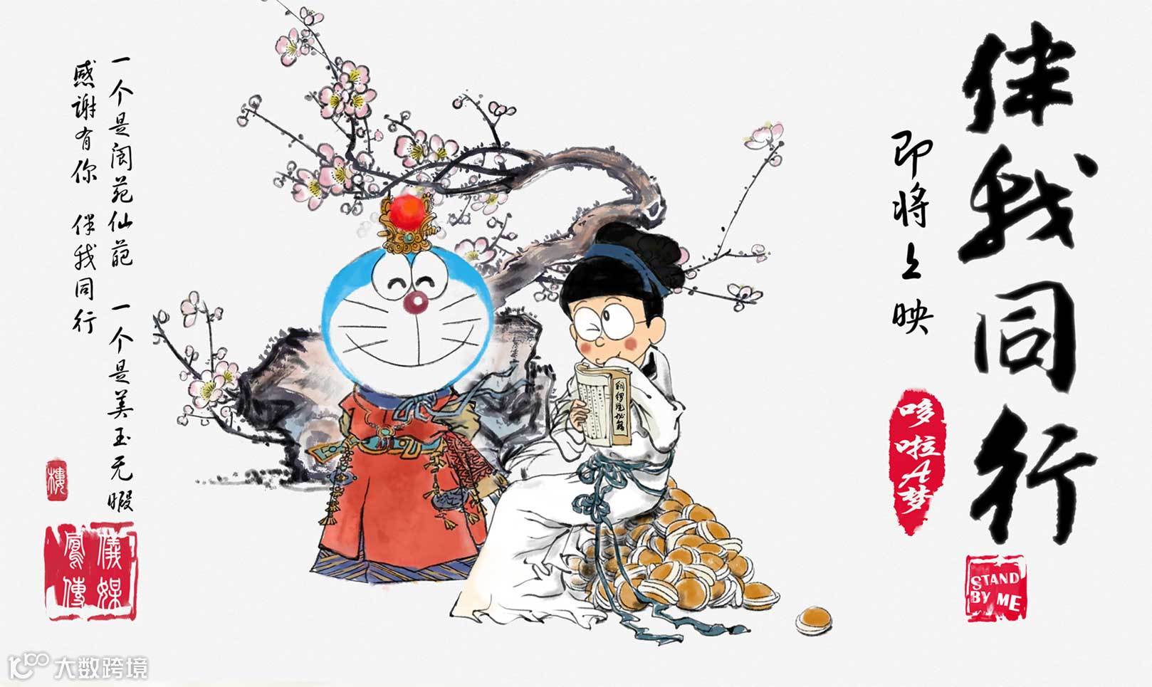 而更大的惊喜是,在一连串的创意海报中,“四大名著“系列让人大呼绝妙!哆啦A梦和大雄等伙伴们混入中国风的山水画中!