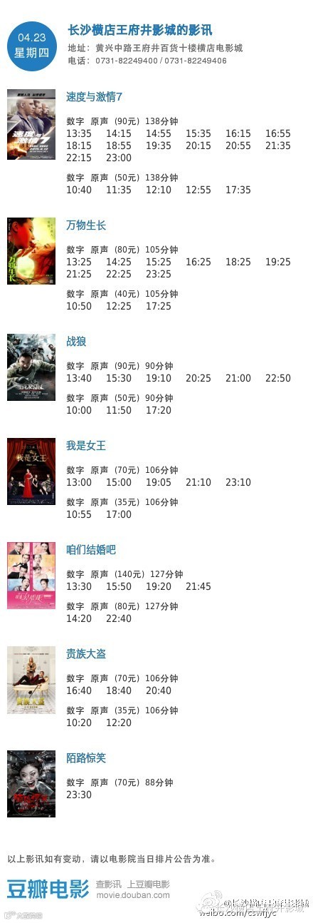 ◆影讯【4月23日王府井/岳麓店】