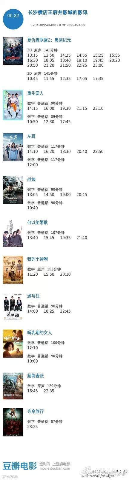 ◆影讯【5月22日王府井/岳麓店】