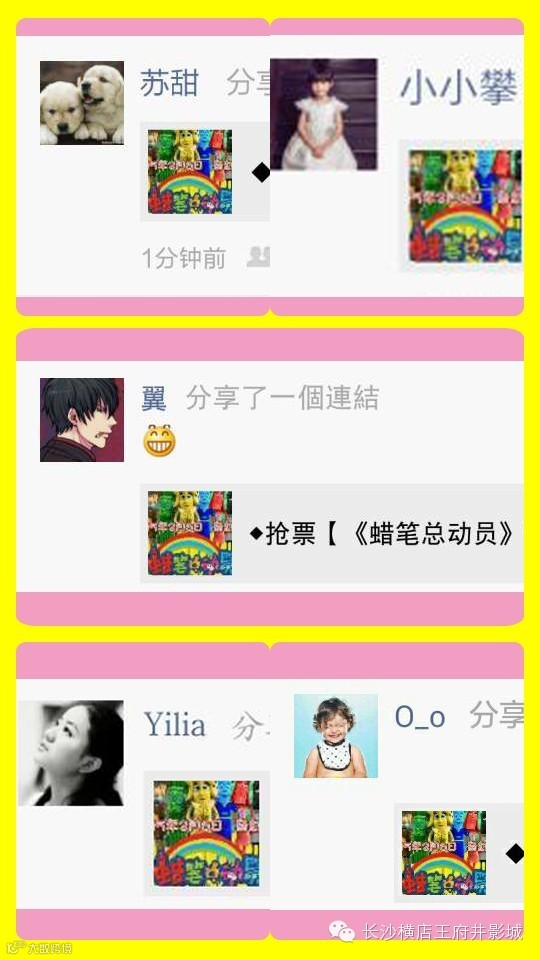 恭喜以上5位观众获得了由长沙横店王府井影城提供的《蜡笔总动员》电影票每人两张