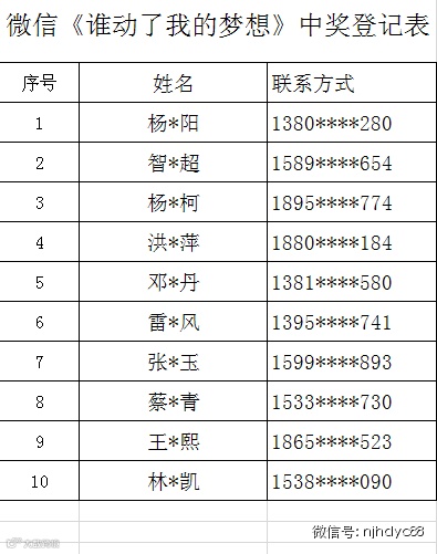 亲们~!感谢您参与本期的免费看电影活动,小编现在公布《谁动了我的梦想》第一波中奖名单哦(第二波明天公布哦O(∩_∩)O~)。本期中奖的朋友们(见图片)将获得2014年12月12日18:50《谁动了我的梦想》电影票2张,请您在2014年12月12日当天的17:30-18:30期间(仅限该时段),来南京横店影城找值班经理领取电影票,过时无效过期作废。
