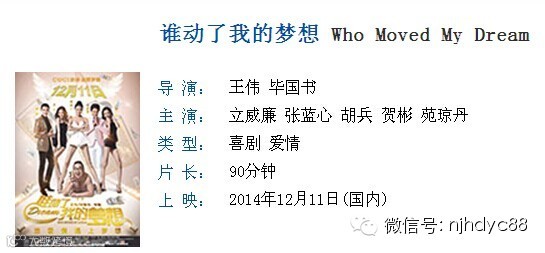 没有中奖的朋友们还有机会哦!即日起至12月13日期间,关注“南京横店电影城”官方微信,转发该微信至朋友圈,并回复“我要免费看电影+《谁动了我的梦想》+姓名+联系方式”,将有机会获得12月14日12:25的《谁动了我的梦想》电影票2张,数量有限送完即止哦。