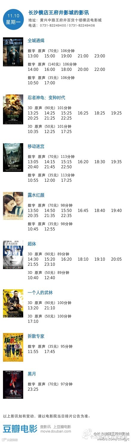 ◆影讯【11月10日王府井/岳麓店】
