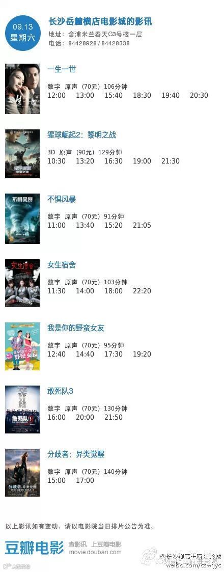 ◆影讯【9月13日王府井/岳麓店】