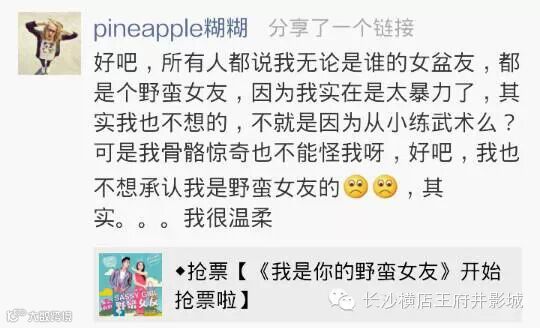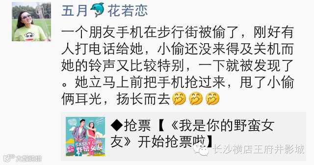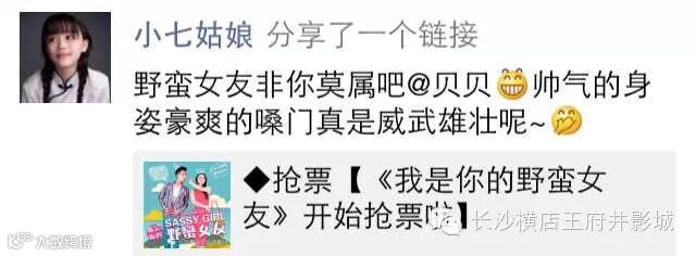 恭喜以上15位粉丝获得了由长沙横店王府井影城提供的《我是你的野蛮女友》电影票每人两张