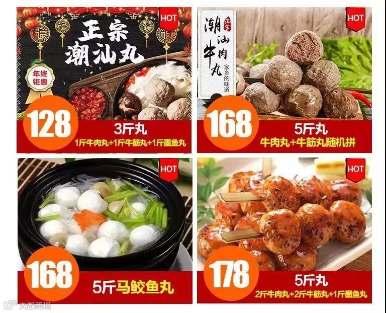 牛肉丸、牛筋丸、墨鱼丸、马鲛鱼丸..