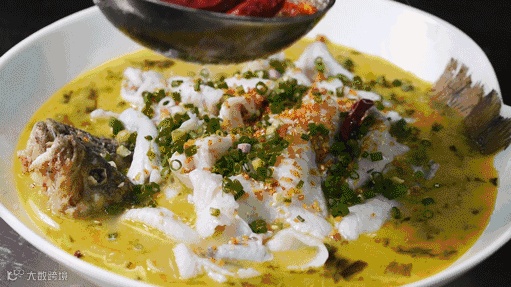 红色辣椒 配上 白色鱼肉 再加上 酸味汤底