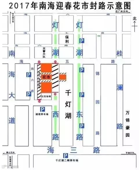 为保证花市活动顺利开展,在2016年12月31日至2017年1月28日期间灯湖西路(海四路路口至海五路路口)、市民广场西区间路全路段实施双向车道封闭。禅城区公交120、132、139线路需作临时绕道行驶。