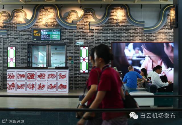 △白云机场A102特色国际登机口,饰有岭南建筑代表的“锅耳墙”