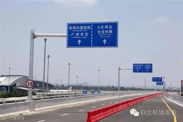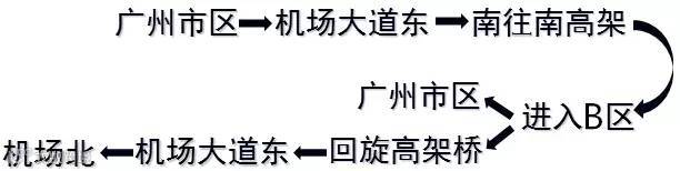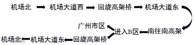 进入B区接客的社会车辆,无论是广州市区前往机场方向,或是机场北工作区、花山和花东方向前来的车辆,都必须从机场大道东路上南往南高架桥,通过南往南高架桥回旋后进入B达到区接客。