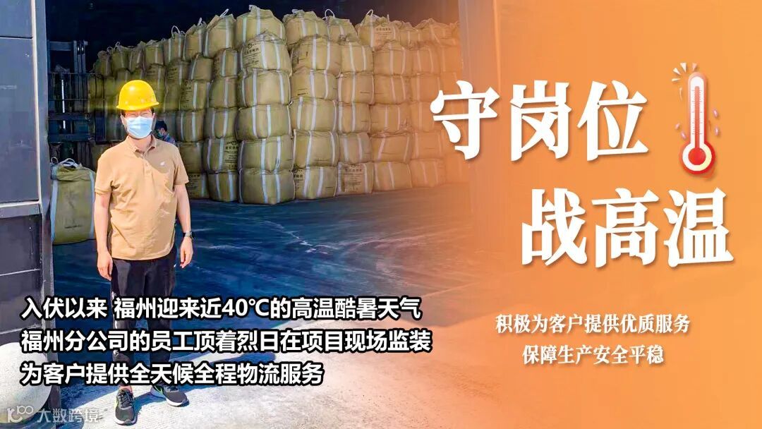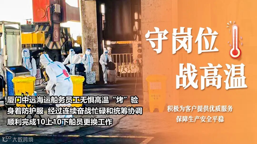 近期,各地连续高温天气,面对炎热酷暑,厦门中远海运物流的一线员工无惧“烤”验,以饱满的工作热情和专业的能力,积极为客户提供优质服务,保障了高温天气内生产安全平稳有序。