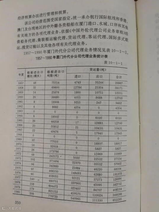 【1957-1990厦门外代代理业务统计表】