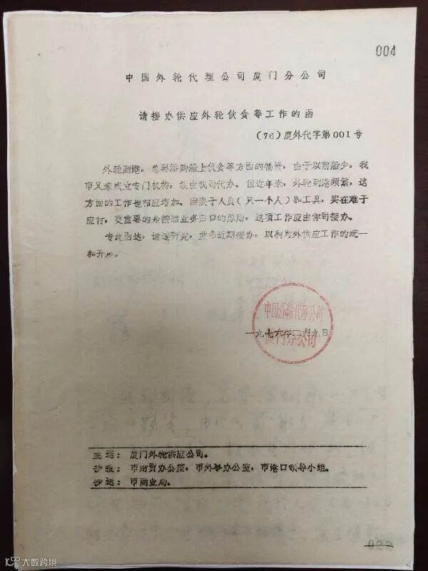 【1976年最早见于公文的外代公司印章】