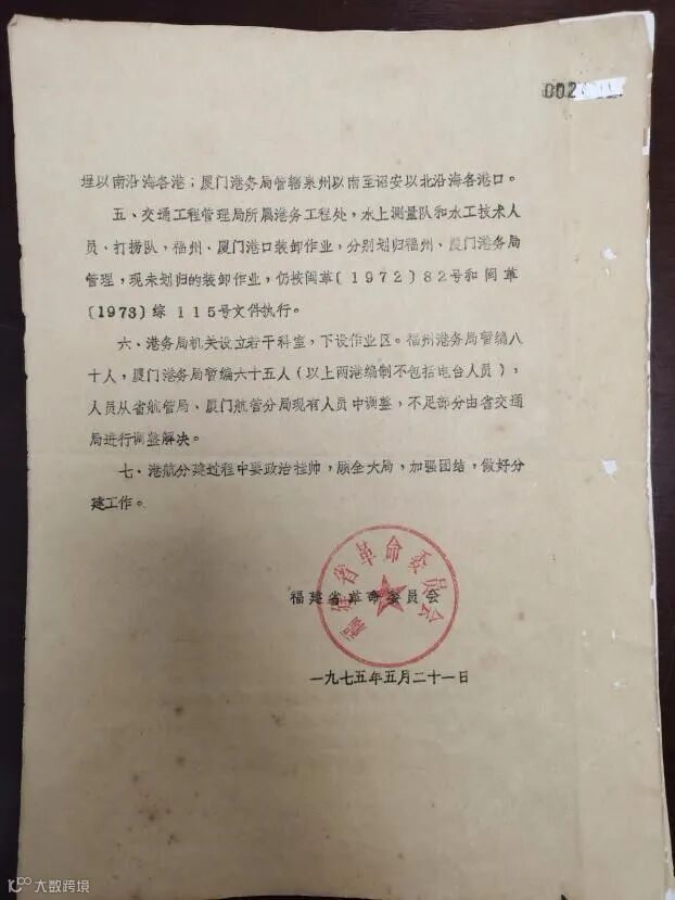 【1961年中国外代总部挂历及1975年福建省港航体制分建】