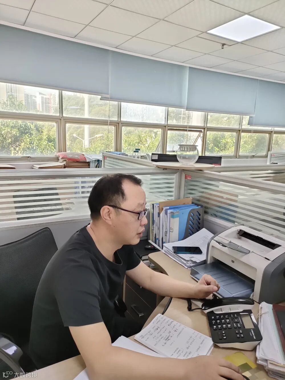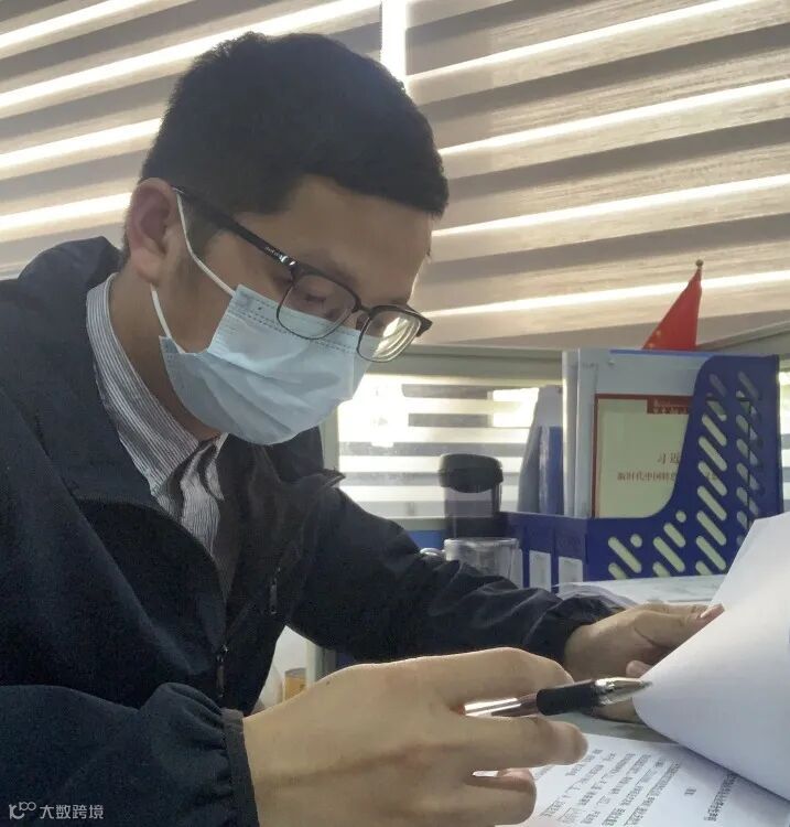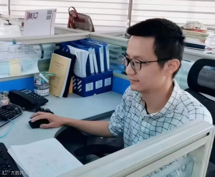 图为陈罕在处理VALE铁矿砂转口台湾铁矿船“裕如”轮、LNG”闽鹭“轮海关申报等工作。