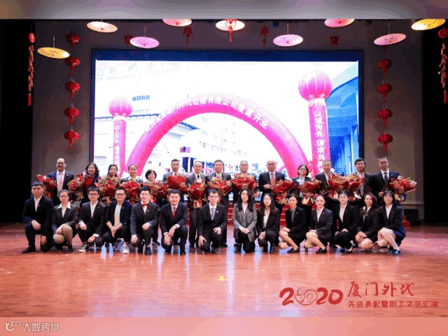 在本次表彰大会上,6个先进集体代表、2个安全生产先进单位代表、8个创新项目代表、6位优秀管理奖获得者、58名优秀员工、20名服务明星分别登台领取奖杯、奖状并接受来自全体员工的热烈掌声。本次大会还特地设置“特别乐章”——继往开来,三十年工龄荣誉奖杯授勋仪式。厦门外代吴岩松董事长亲自为14名在外代工作了三十年及以上的老员工们颁发荣誉奖杯,并由14名2019年明星新员工为老员工们献上花束。