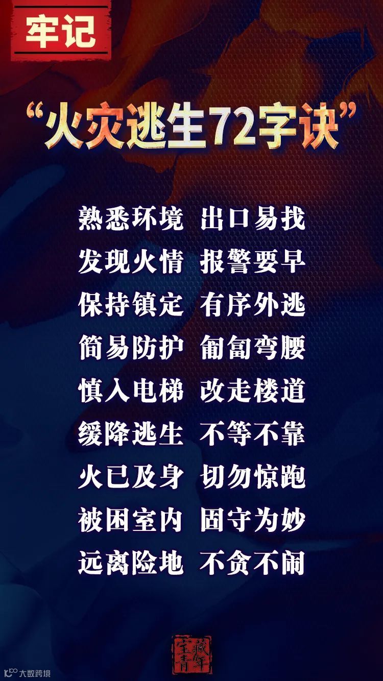今天是第29个全国消防日,火灾逃生72字诀你记住了吗?