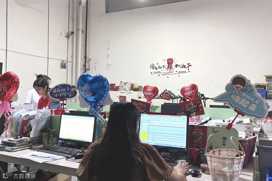 库区和办公区域随处可见“迎战双十一”的宣传标语,营造了浓厚的“双十一”氛围。
